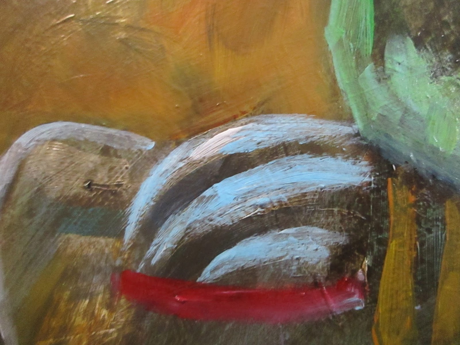 I thought to myself, self, how would you paint a bird to make it seem mind blowingly gigantic and like it was fading into the sky-distance? Not sure if it worked. Maybe it needed beach houses to step on.